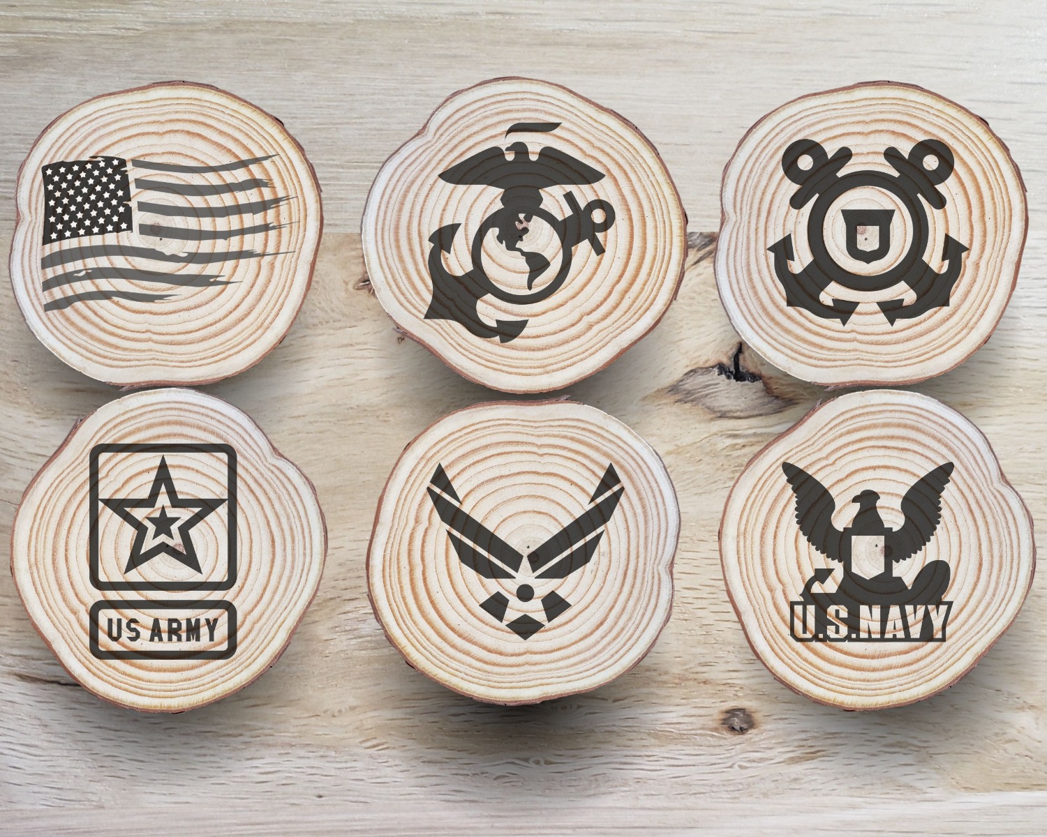 This listing is for multiple patterns of our military coasters, if you would like to order a single military pattern please visit our other individual military listings. In the “Your Customization” please specify quantity of each style to appear in your set. Otherwise design will be as evenly distributed as possible.